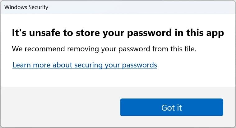Alert when entering Windows passwords in an insecure application . Image : www.bleepingcomputer.com