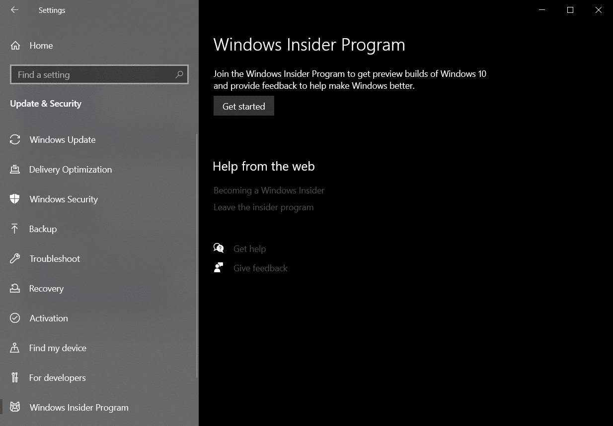 - လက်ရှိ Windows 10 PC တွင် Settings -> Update & Security -> Windows Insider Program သို့ သွားပါ။