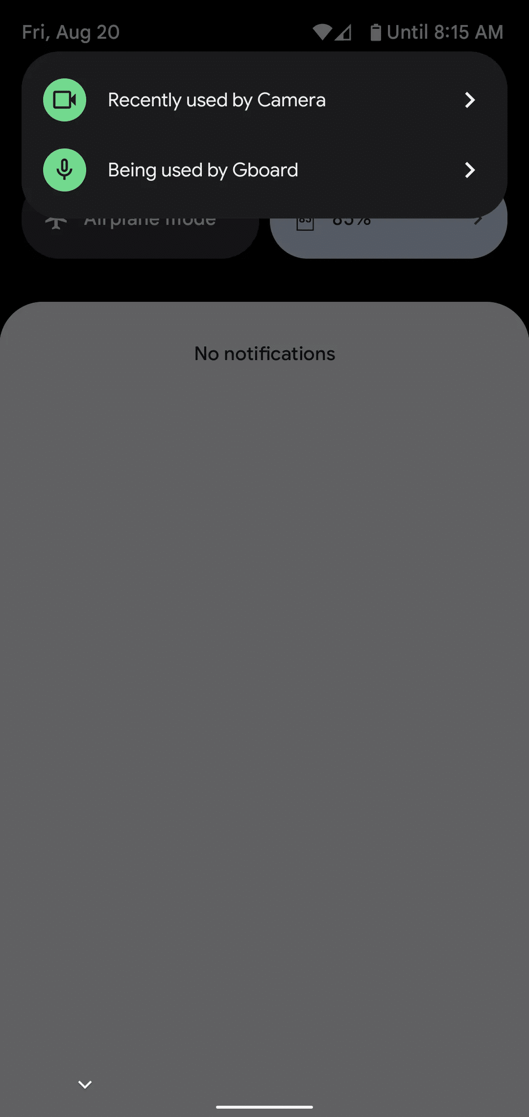 ဒါဆို ဘယ် app ကို ၀င်ရောက် ကြည့်ရှုပြီး ဘယ် app က responsible ဖြစ်သလား ဆိုတာ ဘယ်လိုသိနိုင်မလဲ? လျှို့ဝှက်ချက်က အောက်သို့ ပွတ်ဆွဲပါ၊ screen ထောင့်မှာ အစိမ်းရောင်အစက် ( green dot ) တစ်ခုကို မြင်တိုင်း screen အပေါ်ဆုံးမှ အောက်သို့ တစ်ခါ ပွတ်ဆွဲလိုက်ပါ။ အစက်က ထို icon သို့ ပြန်ချဲ့ပြီး ၎င်းတွင် ပါဝင်သော အရာကို အတိအကျသိရန် ၎င်းကို နှိပ်ပါ။