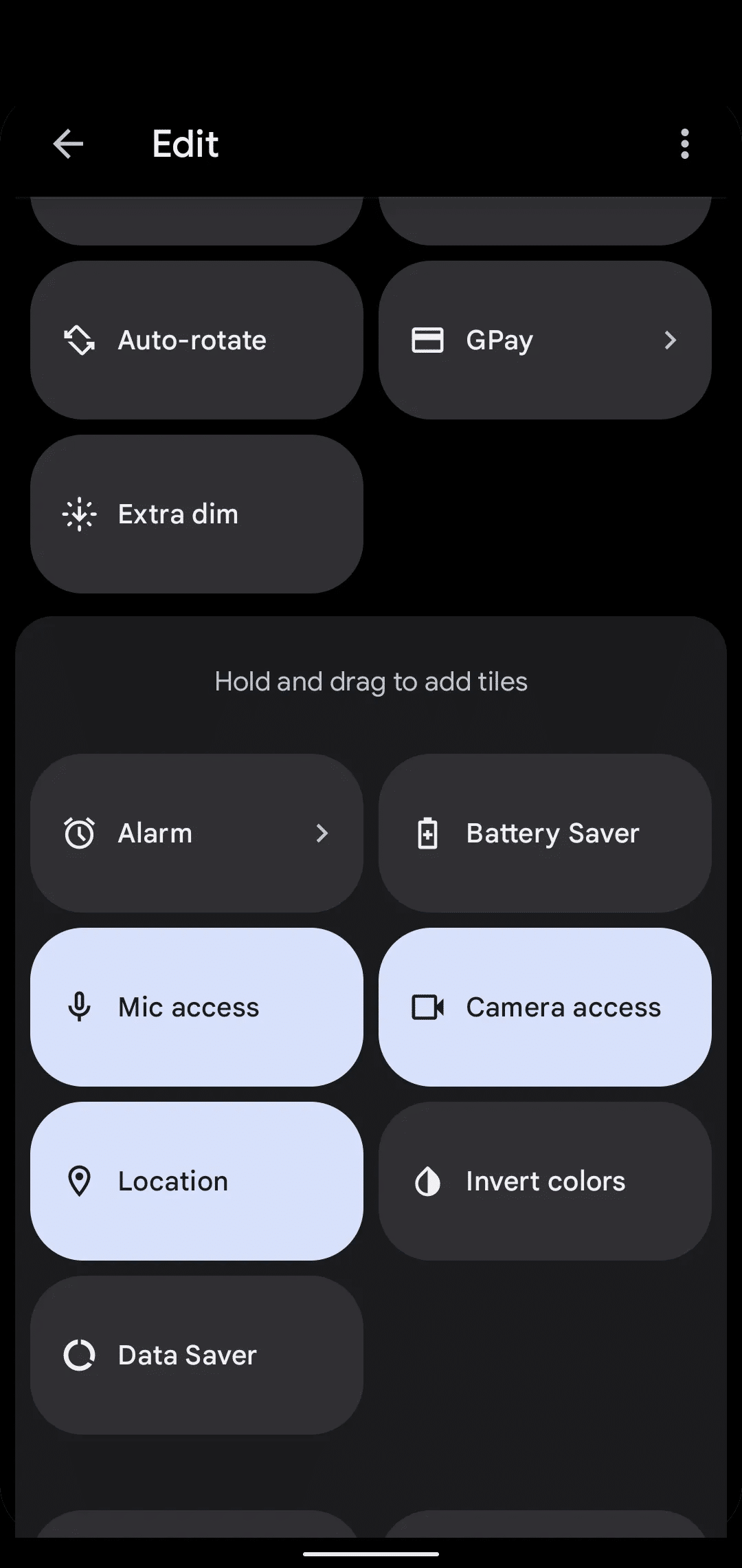 - တစ်ခုချင်းစီကို တစ်စက္ကန့်စီ ဖိထားပါ၊ ထို့နောက် Quick Settings panel ၏ နေရာသို့ ရွှေ့ရန် အပေါ်သို့ တတ်လိုက်ပါ list တွင် ပေါ်လာ ပါလိမ့်မယ်။