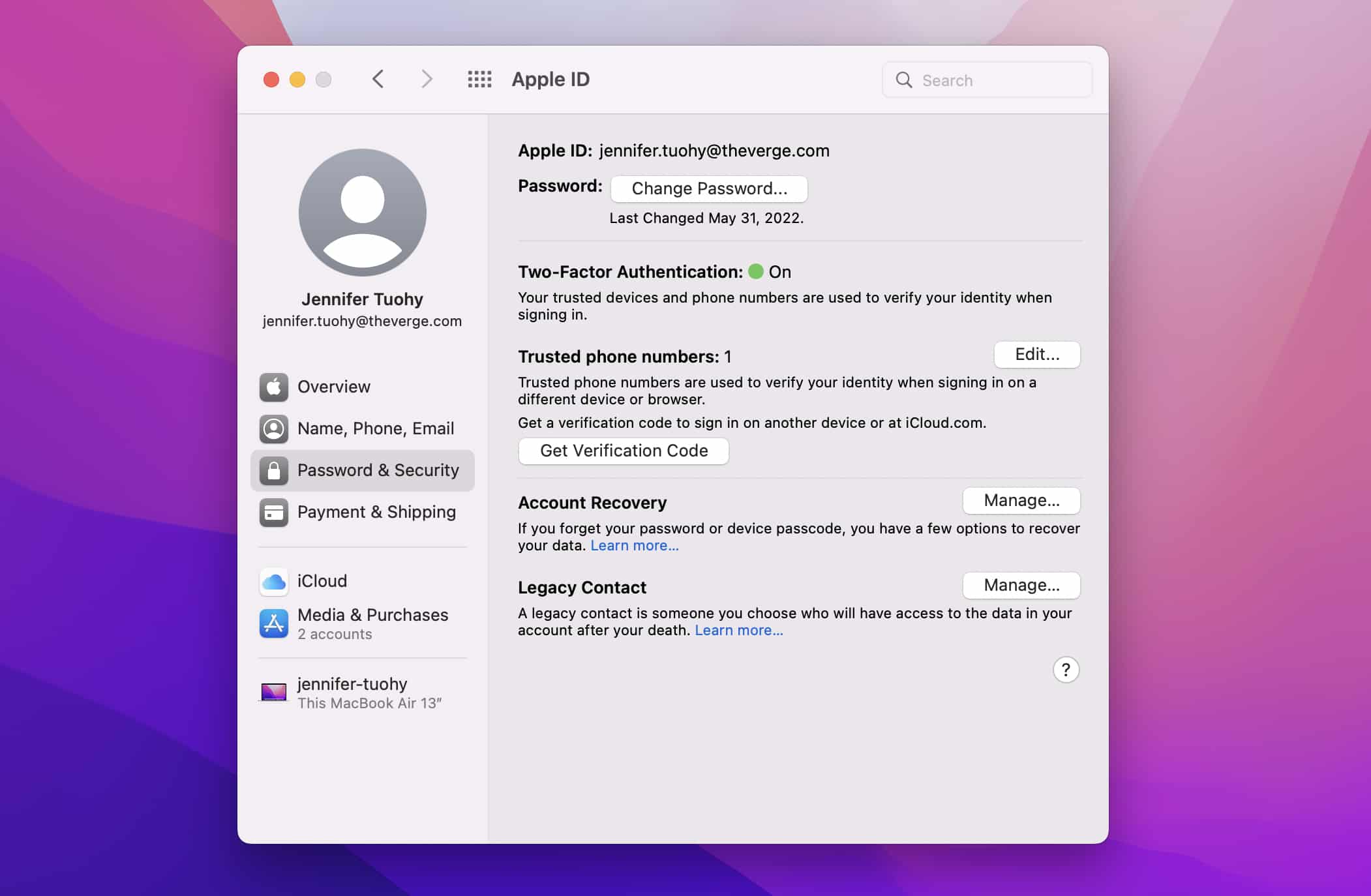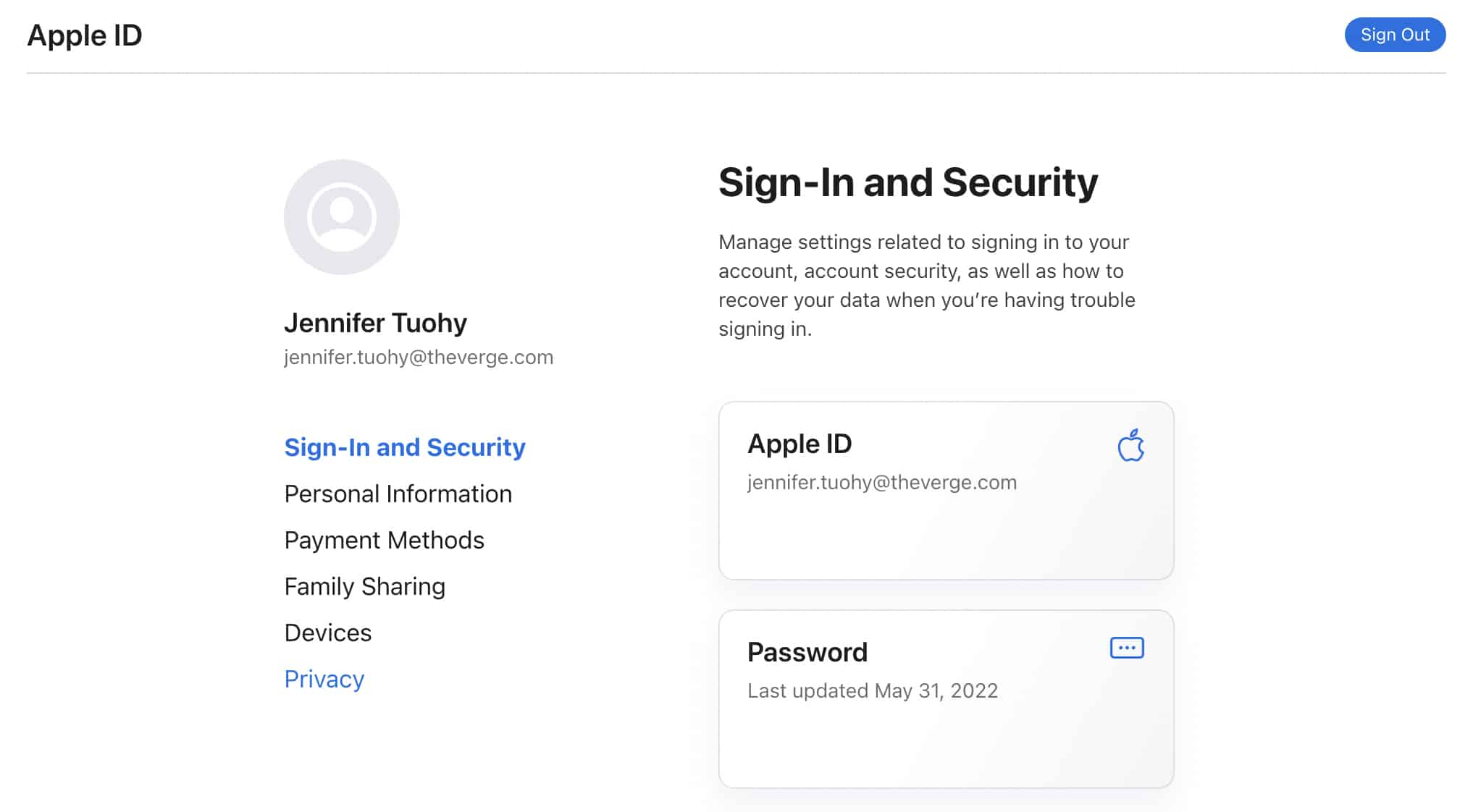 You can also change your password on Apple’s website. Image: Jennifer Pattison Tuohy