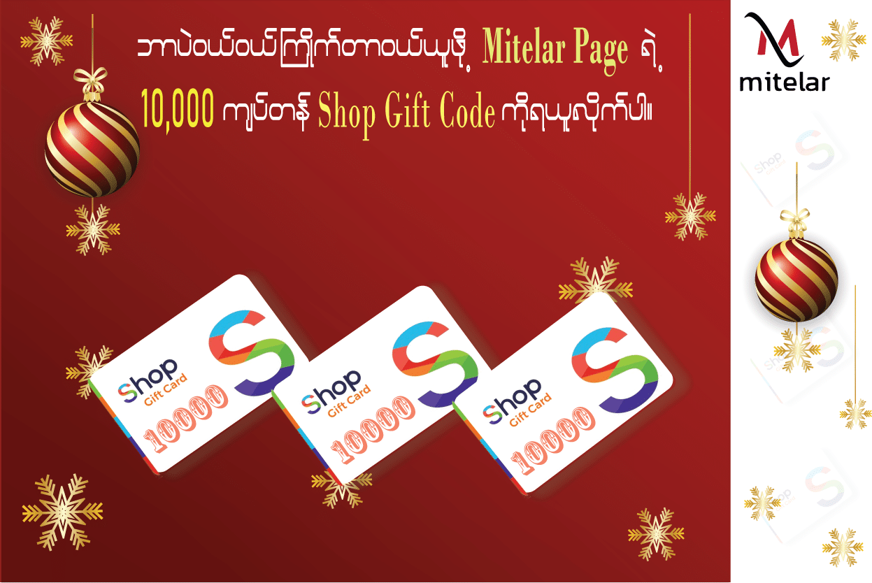 New Year နှစ်သစ်အကြိုမှာ Mitelar ရဲ့ ၁၀၀၀၀ ကျပ်တန် Giveaway voucher နဲ့