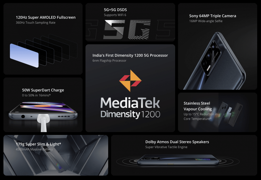 Dimensity 1200 ချစ်ပ်ပါသည့် Realme X7 Max 5G Smart Phone