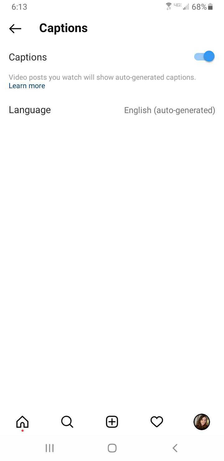 ယခုအခါ Instagram မှာ အလိုအလျောက် ဖန်တီးထားတဲ့ စာတန်း(auto-generated captions) တွေ ပါရှိပြီး ဆိုလိုတာကတော့ ၎င်းဟာ အက်ပ်ပေါ်ရှိ ကြည့်ရှုတဲ့ ဗီဒီယိုတိုင်းကို အလိုအလျောက် မှတ်တမ်း တင်နိုင်မှာပဲ ဖြစ်ပါတယ် ။ ဒါပေမယ့် အက်ပ်မှာ စာတန်း (captions)တွေ မပေါ်မီမှာ feature ကို ဦးစွာ ဖွင့်ထားရမှာ ဖြစ်ပြီး စာတန်း(captions)တွေဖြင့် ဗီဒီယိုများတွေ တင်ချင်တယ် ဆိုရင်လည်း အလားတူပဲ ဖြစ်ပါတယ်။